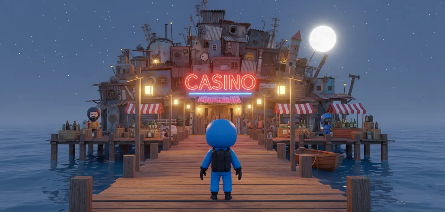 There’s also a floating city, a new safe zone. Traders here sell food, meds, dive upgrades, and the full lineup of watercraft. There’s a casino for those willing to gamble scrap, and a quest desk with missions to clear patrols and hunt rare marine resources. It’s a hub: easy to launch from, safe to return to with loot.