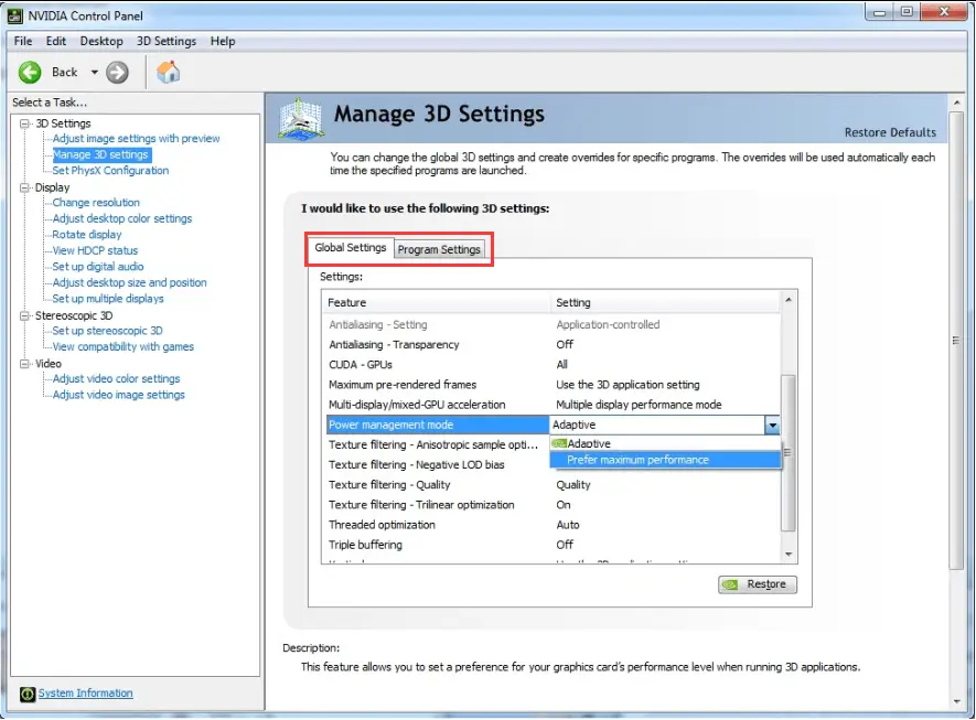 Power management - Prefer maximum performance